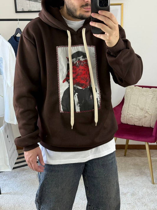 FELPA CON CAPPUCCIO RICAMO BARA BARA PIOMBO