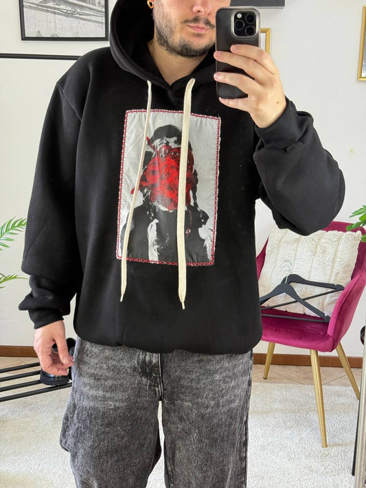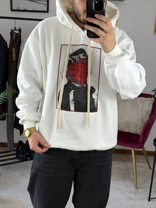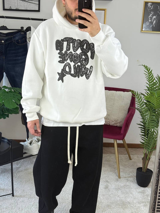 FELPA CAPPUCCIO STAMPA MONEY BIANCA