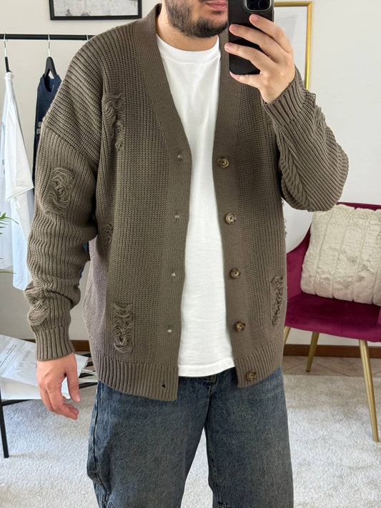 CARDIGAN ROTTURE MARRONE