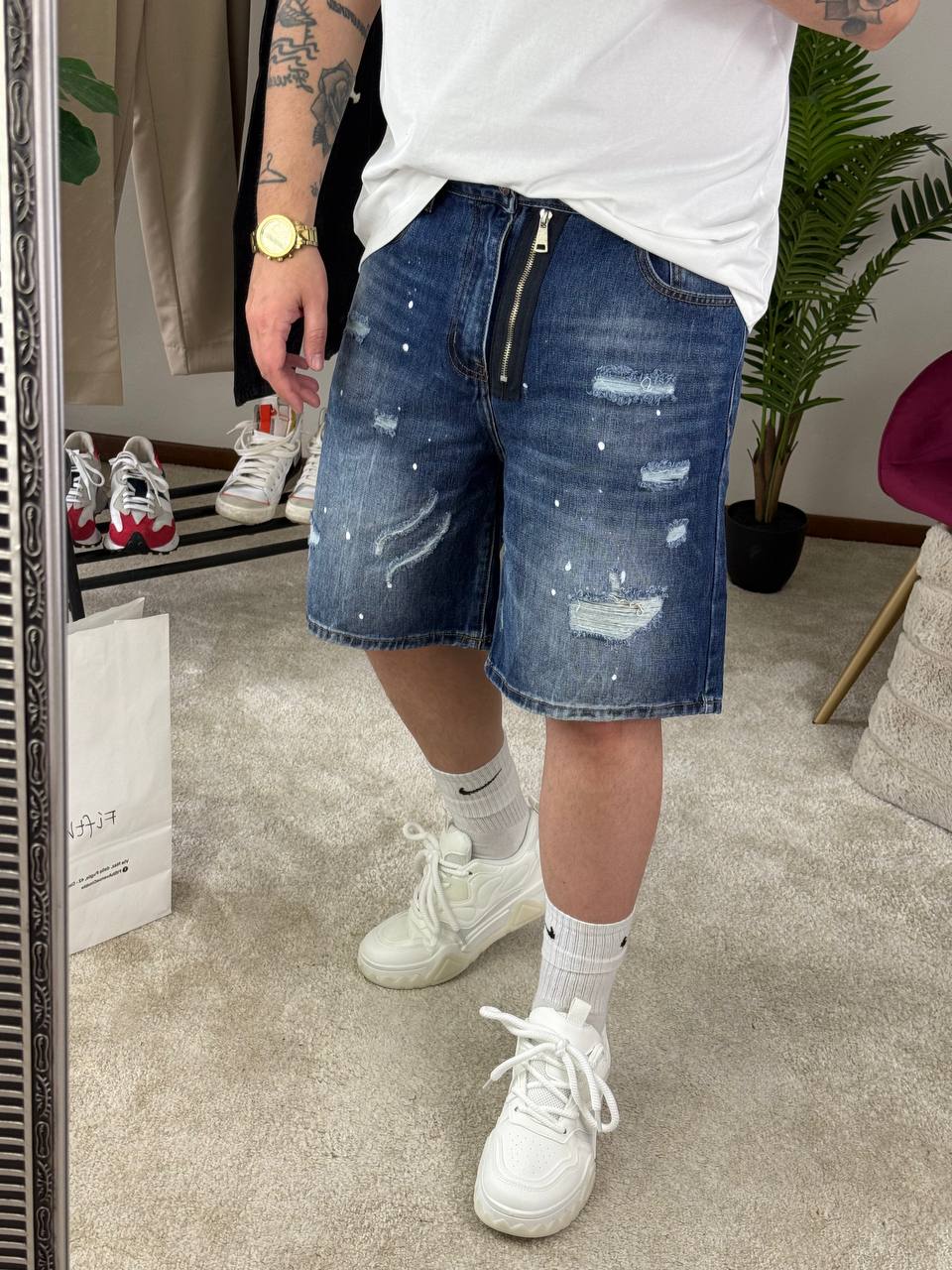 Bermuda jeans dal fit pazzesco e dalla vestibilità regolare.