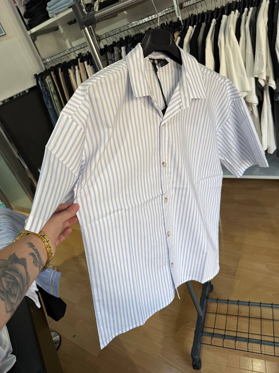 CAMICIA RIGHE BIANCA E CELESTE EFFETTO LUMINOSO