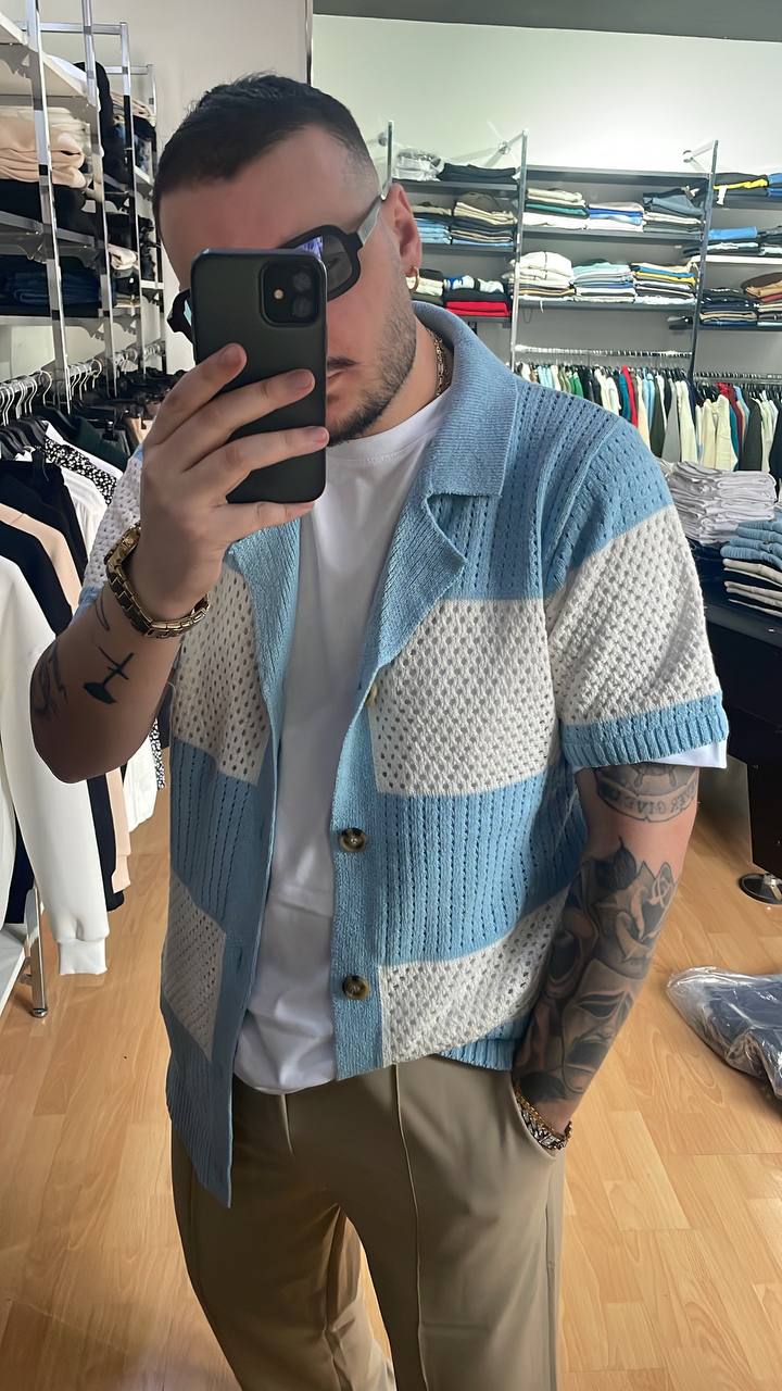 CARDIDAN POLO TRAFORATO BIANCO E CELESTE