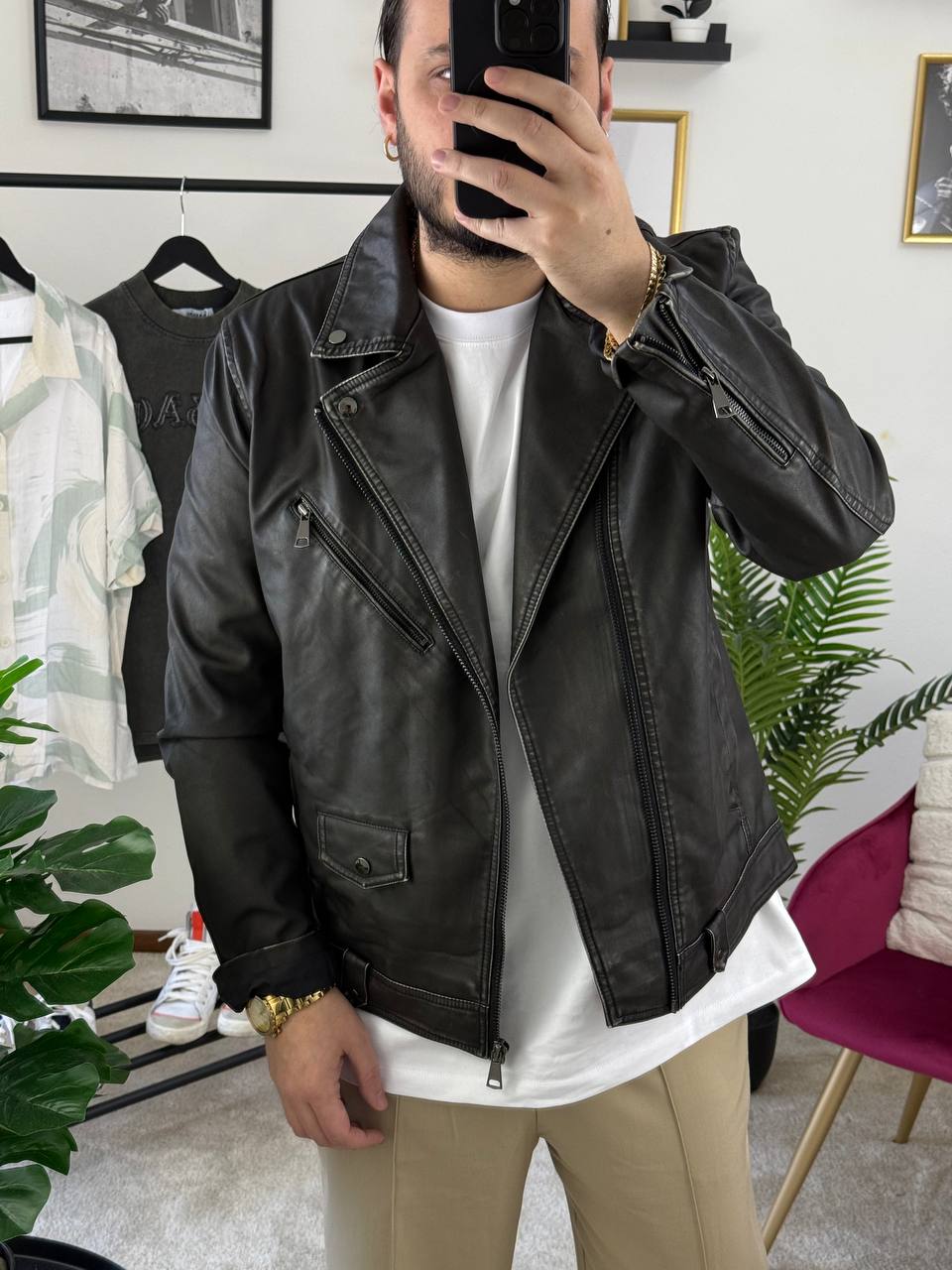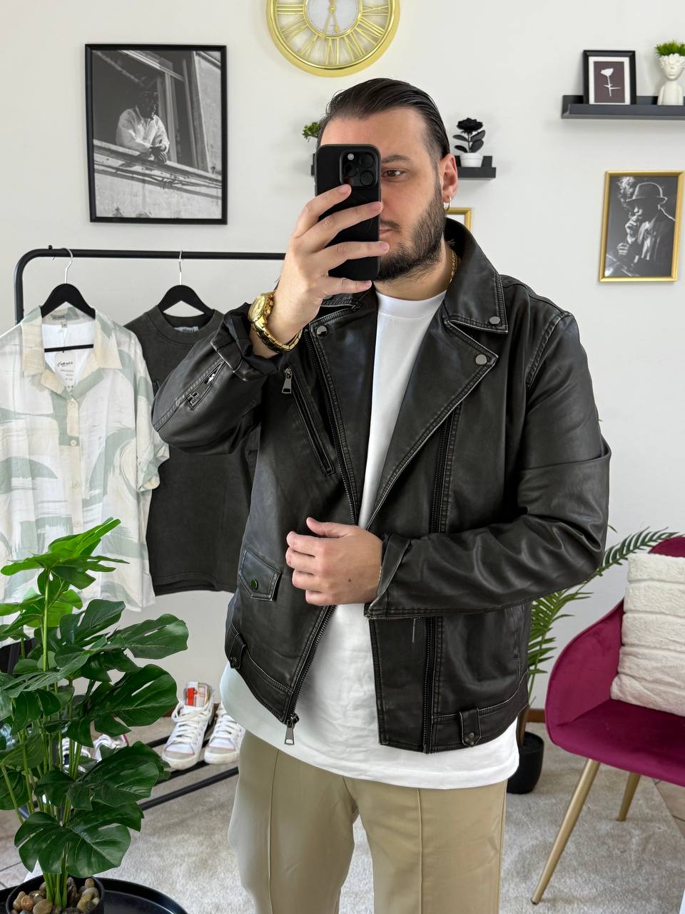 CHIODO ECOPELLE GRIGIO SCURO VINTAGE
