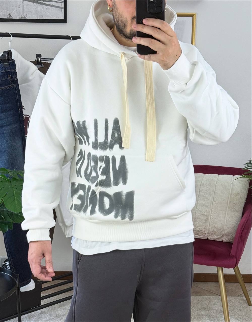 FELPA CAPPUCCIO STAMPA MONEY BIANCA