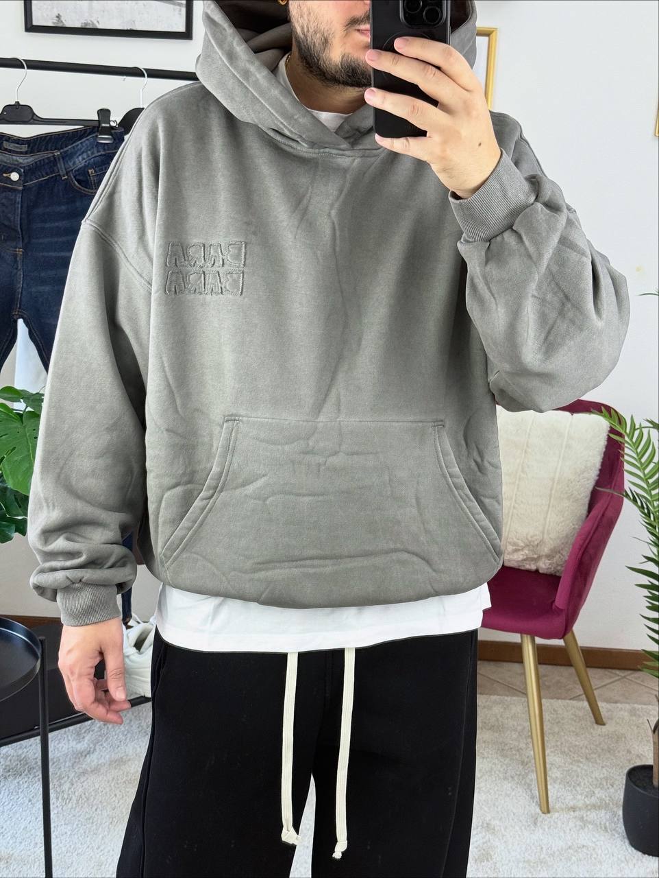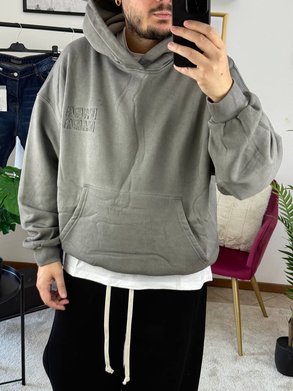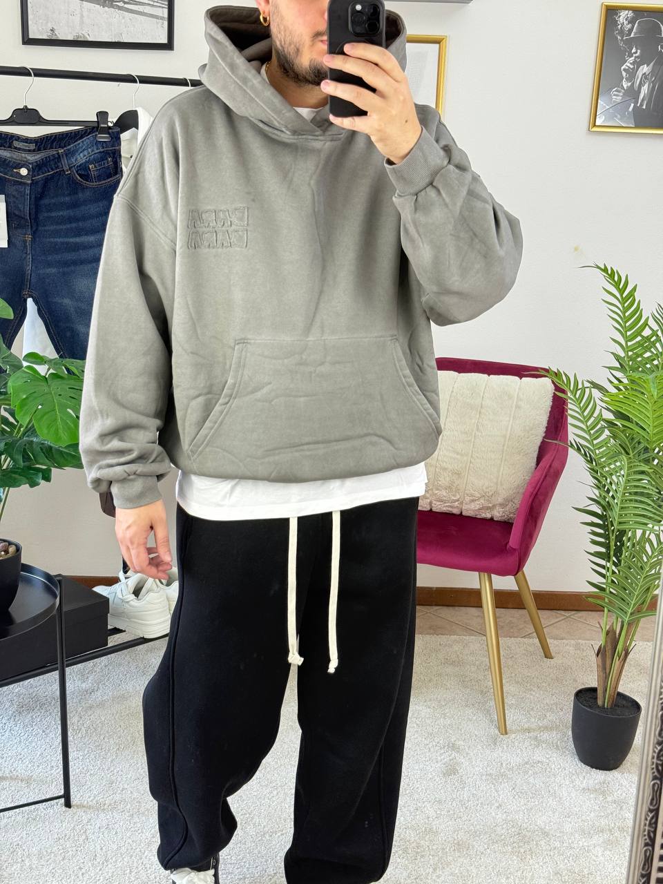 FELPA CON CAPPUCCIO RICAMO BARA BARA PIOMBO